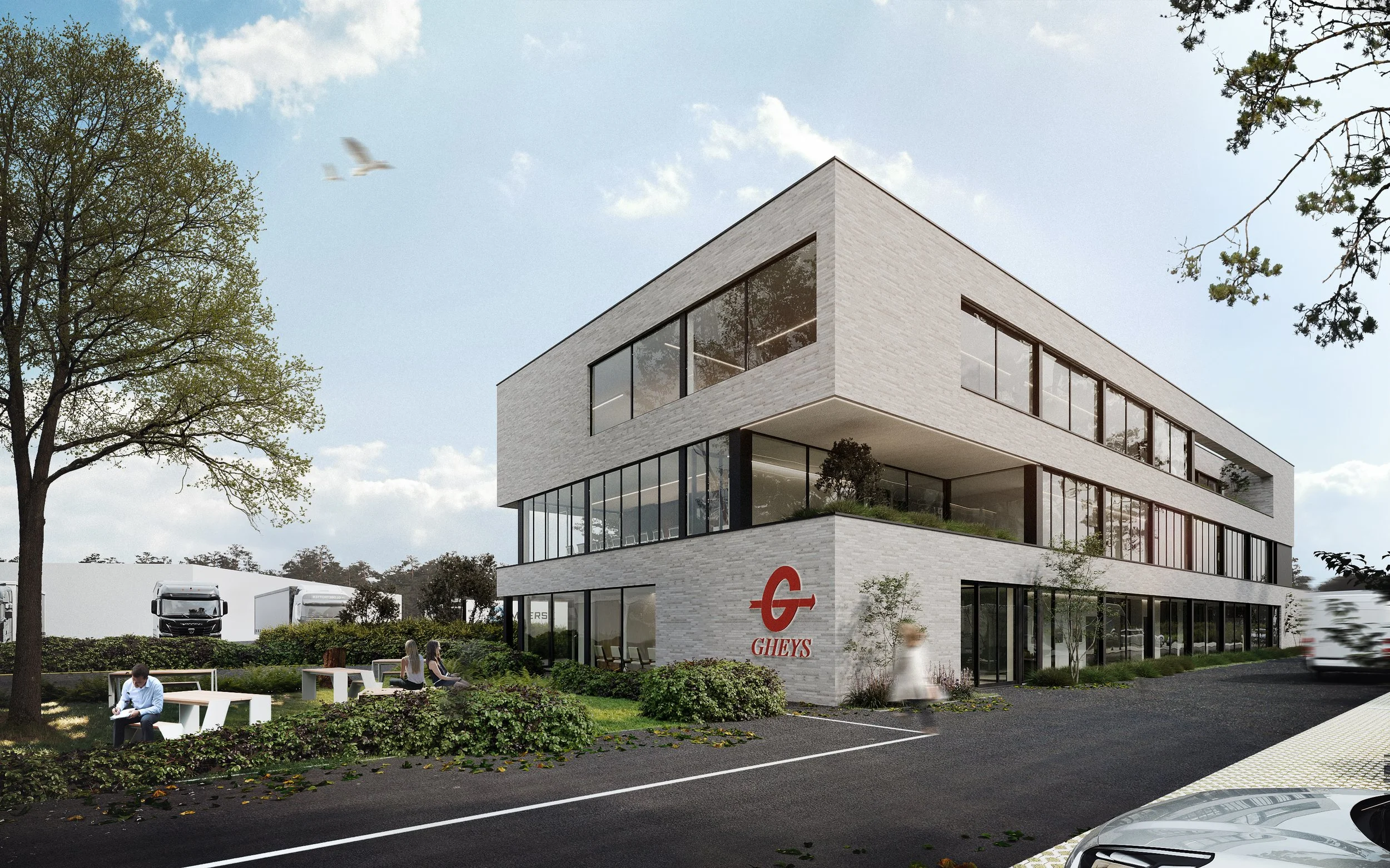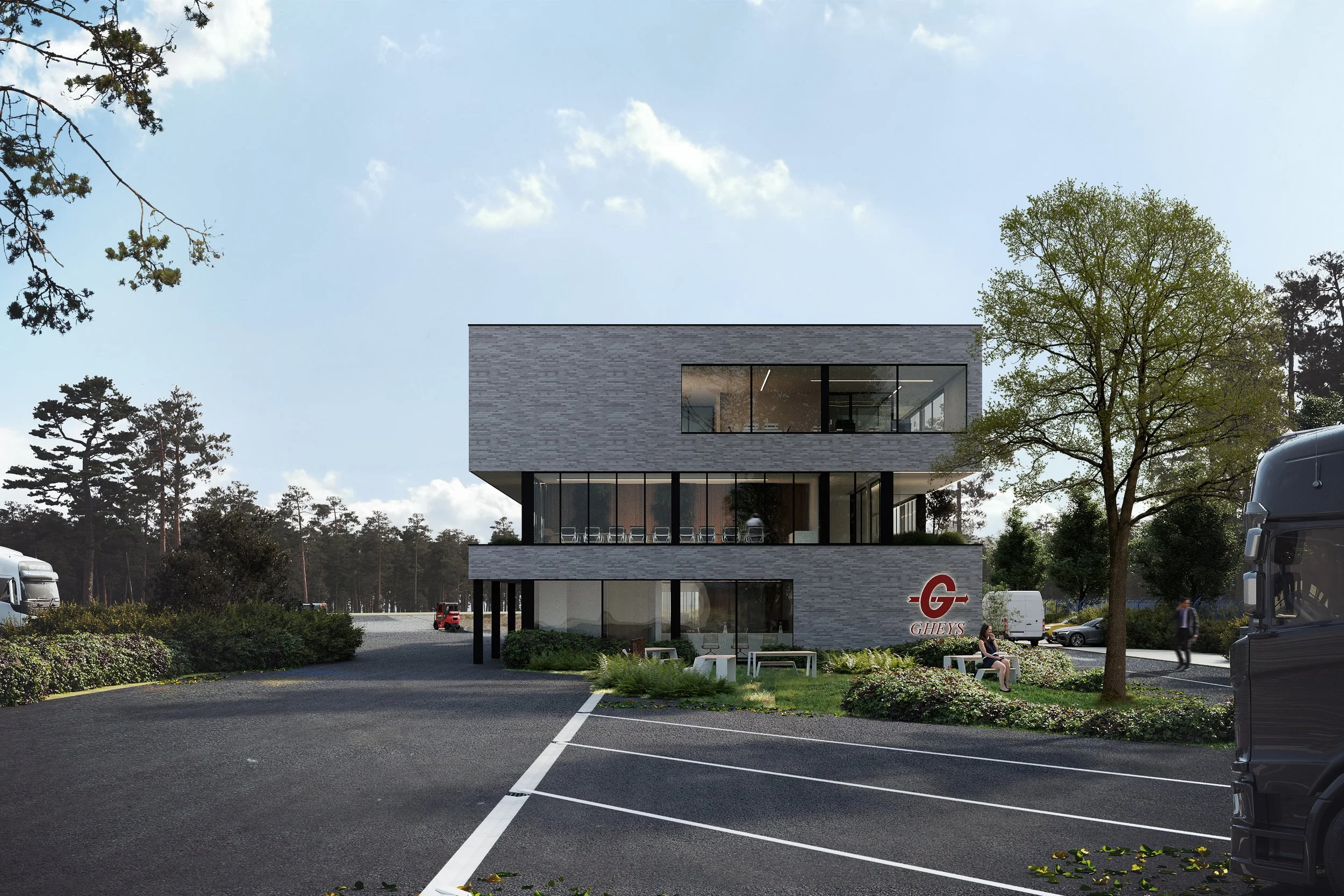 De bouw van het nieuwe kantoor voor Gheys Transport & Logistiek is volop bezig. Zoals bij eerdere projecten, hebben we gekozen voor een gridstructuur als circulaire ontwerpstrategie om door standaardisatie en met minder materiaal een flexibele werkomgeving en een duurzaam gebouw te realiseren. Naast het streven naar energie- en waterneutraliteit, hebben we ons gefocust op het creëren van een zeer aangename werkervaring voor medewerkers en klanten. Daarom hebben we ons gericht op verschillende thema's zoals akoestisch en thermisch comfort, groenbeleving, gezondheid en lichtinval. Het gebouw is ontworpen rond de visie op het nieuwe werken, waarbij medewerkers kunnen werken op de plek die het beste bij hen past. Of het nu gaat om brainstormruimtes, ontspanningsruimtes, stille werkplekken of vergaderpods, het gebouw biedt alle benodigde faciliteiten om hierop in te spelen. Binnenkort laten we u graag meer zien!